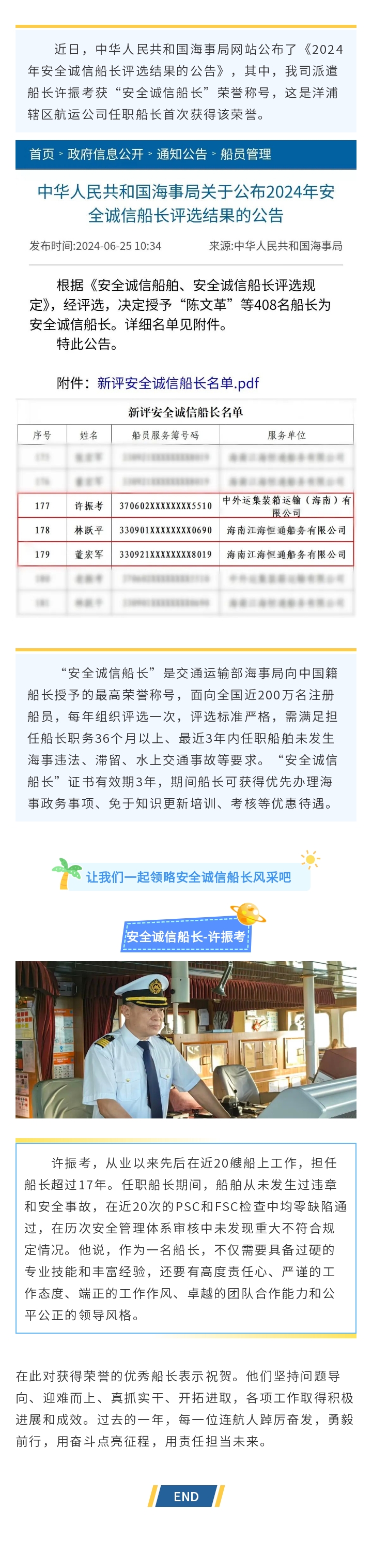 喜報(bào)!青島連航派遣船長榮獲全國“安全誠信船長”稱號(hào)